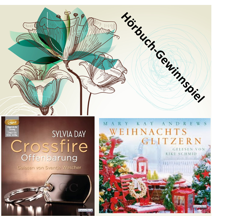 Zu gewinnen gibt es das originalverpackte Hörbuch Weihnachtsglitzern von Mary Kay Andrews und das originalverpackte Hörbuch Crossfire – Offenbarung von Sylvia Day (mit freundlicher Unterstützung von Randomhouse Audio)