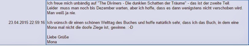 Und Tintenelfe, alias Mona, hat mit folgendem Kommentar gewonnen:
