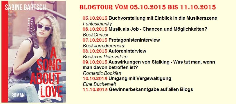 Am 05.10. geht es los mit der Blogtour zu “A Song about Love” von Sabine Bartsch. Hier dürft ihr gerne am 09.10. bei mir vorbei schauen, denn ich habe mich intensiver mit dem Thema Stalking beschäftigt.