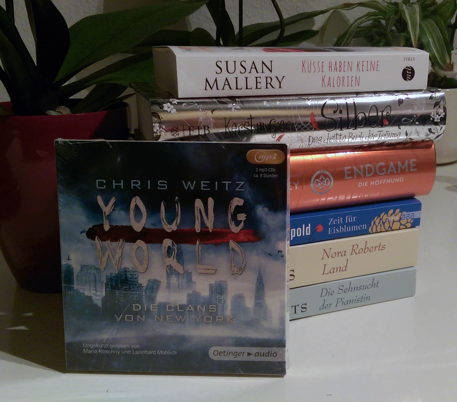 Ansonsten freue ich mich noch auf romantisch-leichte Literatur mit Susan Mallery und “Küsse haben keine Kalorien” sowie “Nora Roberts Land” und “Die Sehnsucht der Pianistin” von Nora Roberts.