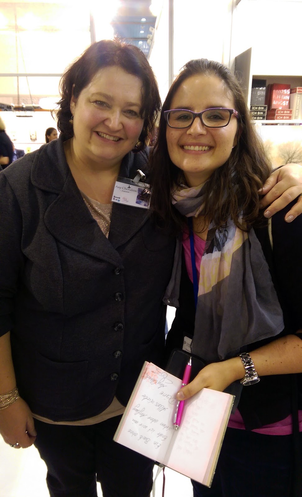 Um 11 Uhr habe ich in Halle 6 beim Romance-Writers of America-Bloggertreffen vorbei geschaut, wo uns u.a. Autorin Sandra Schwab und Tina Dick vom Literaturportal Walking in the Clouds super lieb in Empfang genommen habe. Getroffen habe ich dort auch Jeannette von Indie Translations, Julia von Tealicious Books und die sympatische “Lesemaus”.