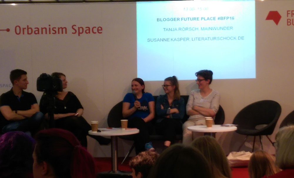 Anschließend habe ich beim Blogger Future Place vorbei geschaut, einer Diskussionsplattform, wo Blogger mit auf der Bühne saßen. Moderiert haben Tanja von Mainwunder und Susanne von Literaturschok. Es ging u.a. um das Thema bezahlte Rezensionen und inwiefern Buchblogger eine Bezahlung fordern können und auch wollen, denn dann bekommt das Bloggen einen gewinnorientierten Charakter. Eine sehr kontroverse und spannende Diskussion wie ich finde.