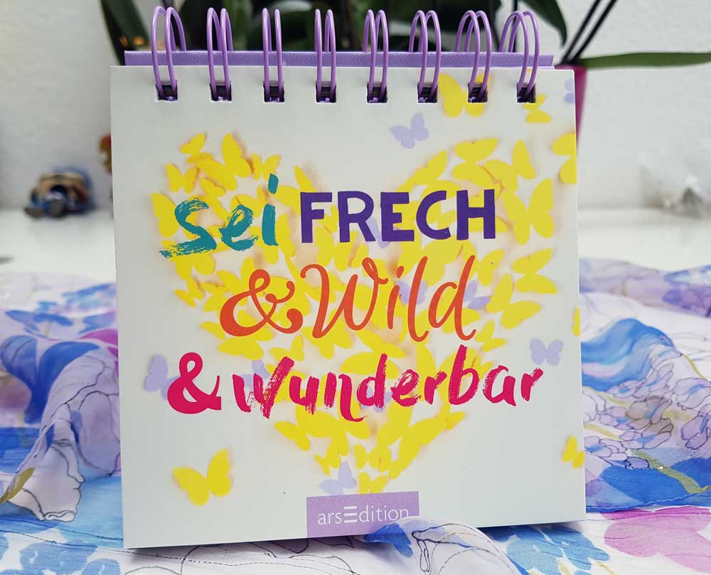 Was mir besonders gut gefällt, ist die sehr farbenfrohe Gestaltung. Das macht einfach gute Laune und zaubert einem schon morgens ein Lächeln ins Gesicht! Dabei wird eine bunte Mischung aus Bildern mit frechen Sprüchen geboten. Ein total coolen Spruch finde ich z.B. diesen hier: