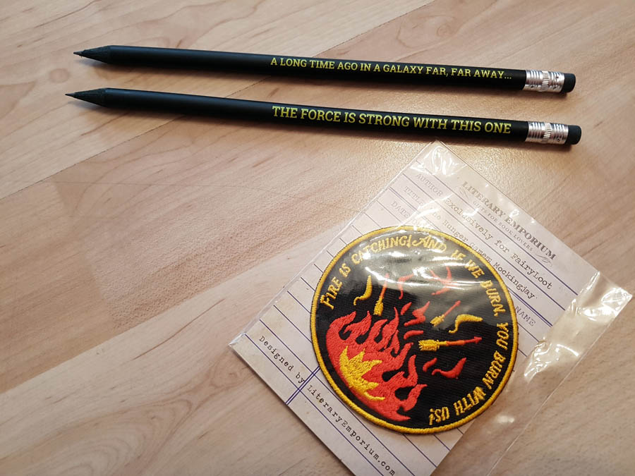 Hier noch mal das coole Panem-Patch und die beiden Star Wars-Bleistifte im Detail: